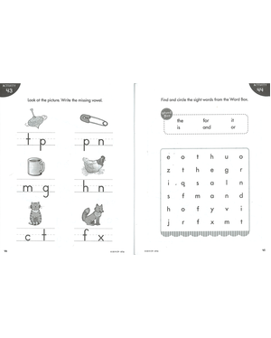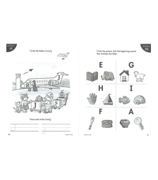 アルファベットと一緒に単語を覚えます。大文字と小文字、同じ音のリズムの単語を線で結んだり、丸で囲ったりして単語に慣れていきましょう。